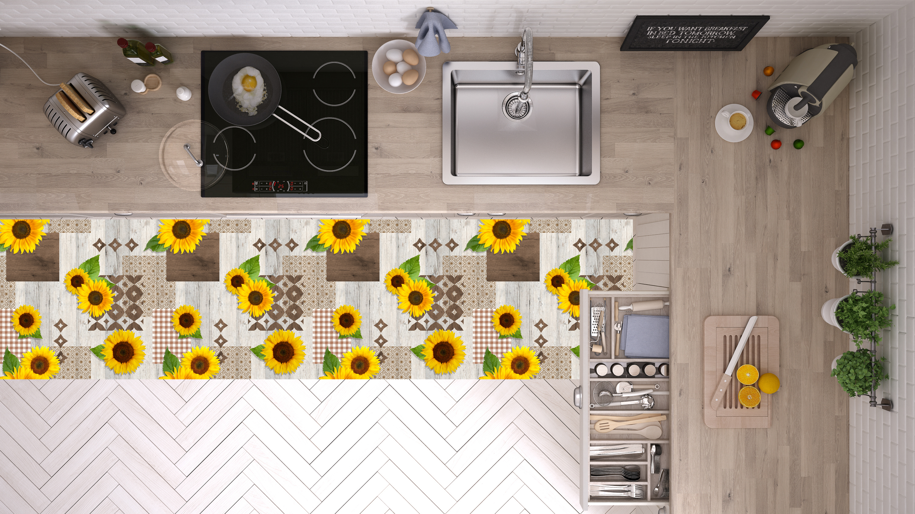 Runner and multiuse carpet in polyester fabric digital printed with antiskid back in expanded vinyl.